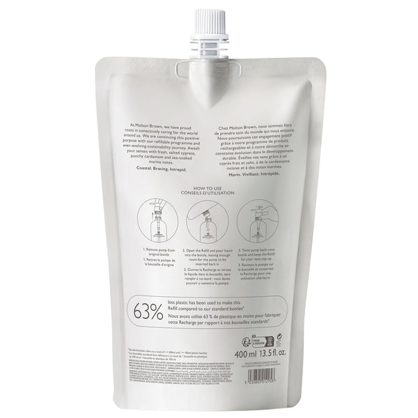 Verfrissend, marien en avontuurlijk: de Coastal Cypress & Sea Fennel-collectie van Molton Brown roept het gevoel op van een zilte zeebries langs een ruige kustlijn. Heldere noten van zeevenkel en zoute lucht openen deze aquatische geur, gevolgd door aromatische nuances van cipres en jeneverbes. In de basis geven cederhout en muskus een rustige, aardse diepte – alsof je de oceaan achter je laat en een dennenbos inloopt.