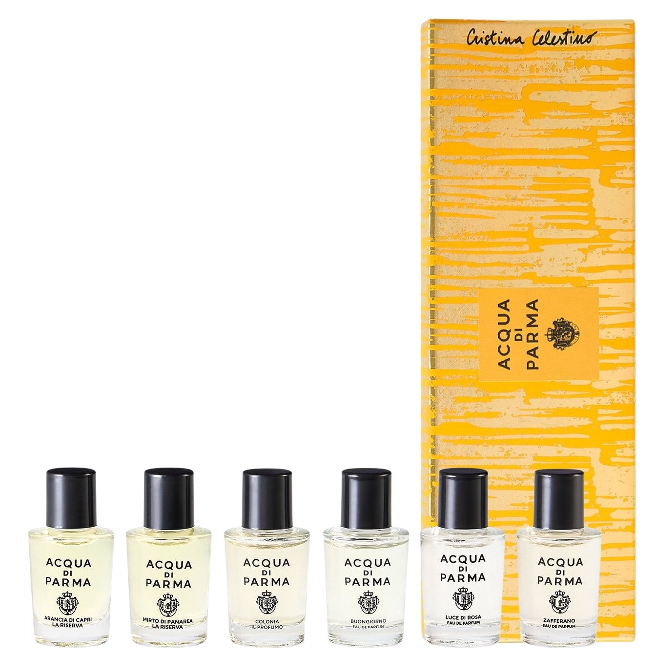 De Acqua di Parma Miniature Set 6 × 5 ml is een verfijnde collectie die de essentie van Italiaanse elegantie in zes iconische miniaturen samenbrengt. Deze exclusieve editie maakt deel uit van de Holiday Collection 2025, ontworpen door Cristina Celestino, en is verpakt in een feestelijke geschenkdoos met het herkenbare grafische patroon van het seizoen.