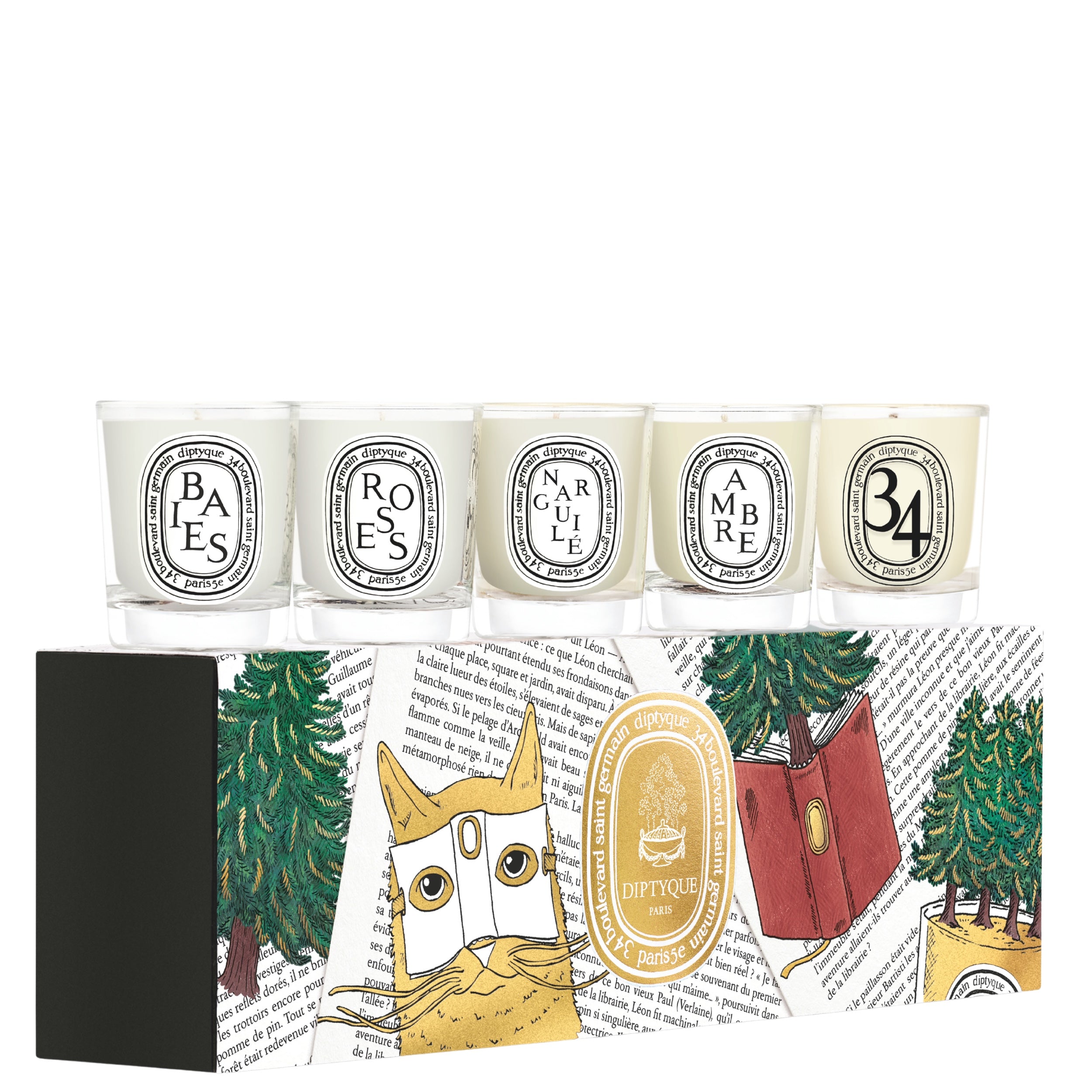 De Holiday Kaarsenset 5 x 35 gr is een ontdekkingstocht door de meest iconische geuren van het Parijse huis, speciaal samengesteld voor de feestdagen van 2025. Deze limited edition bevat vijf miniatuurkaarsen in een prachtig geïllustreerde geschenkdoos, versierd met gouden accenten en de poëtische wereld van Léon de kat, de speelse muze van Diptyque’s wintercollectie.