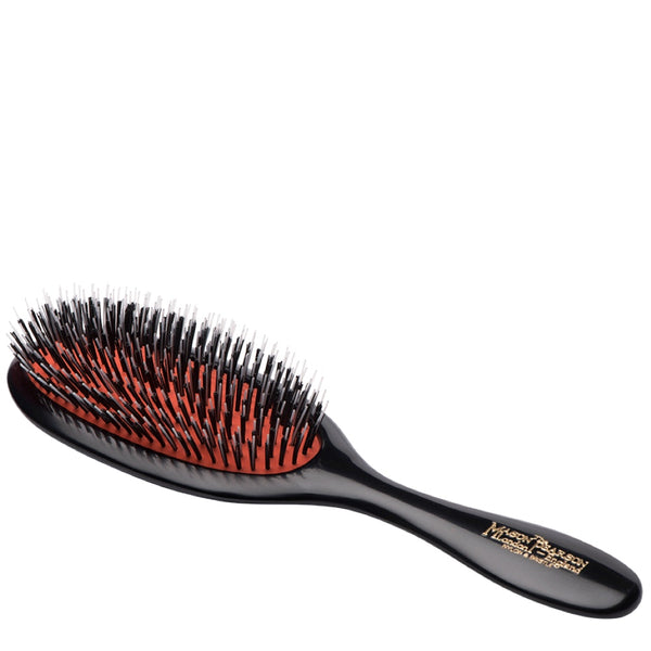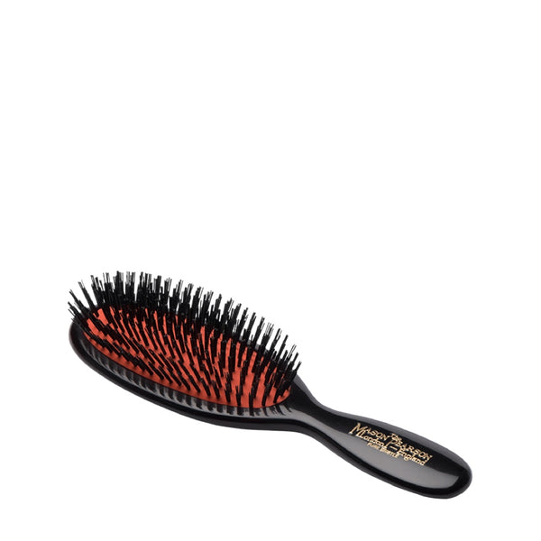 Of het nu gaat om puur wildzwijnhaar of een mix van nylon en zwijnenhaar, Mason Pearson biedt voor elk haartype een perfect gebalanceerde borstel. De kenmerkende rubberen kussenbasis zorgt voor een zachte, comfortabele borstelervaring die niet alleen verzorgt, maar ook ontspant.