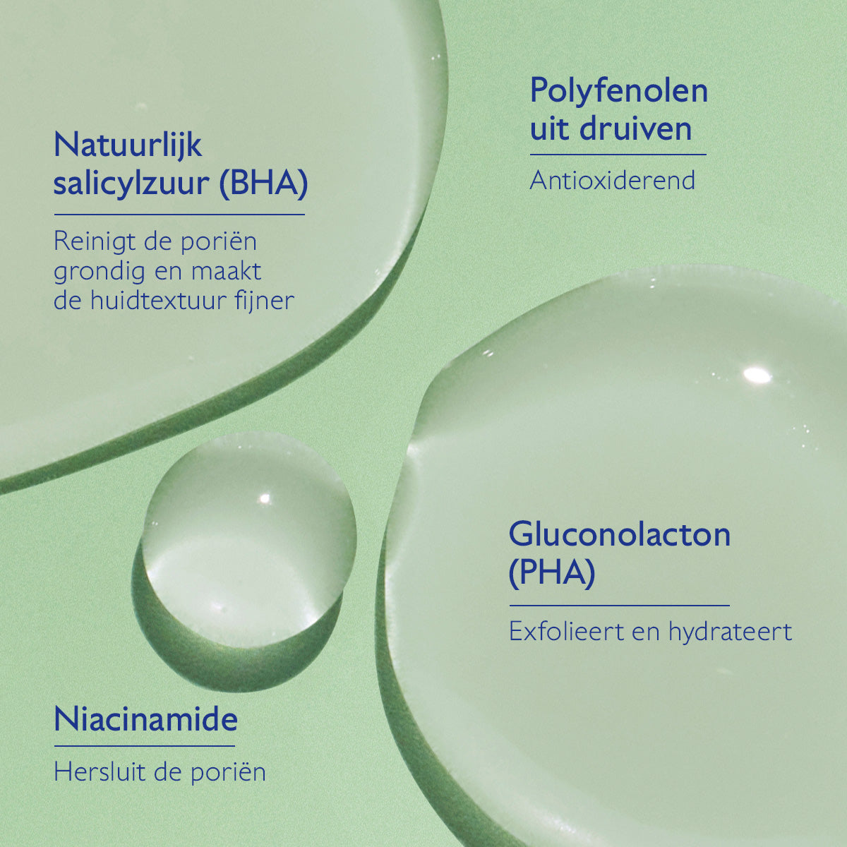 • Niacinamide (vitamine B3): kalmeert, egaliseert en reguleert talgproductie