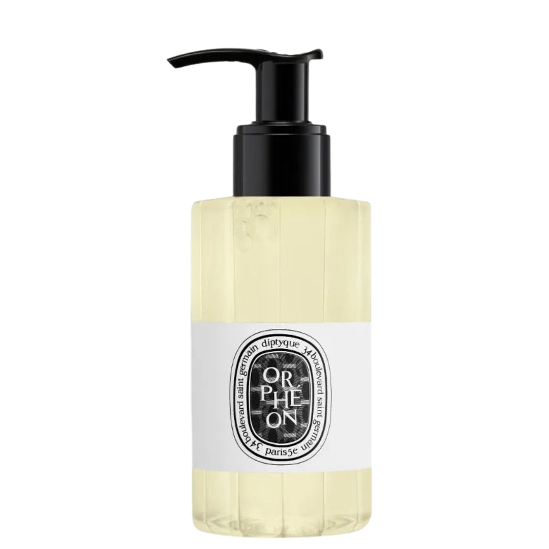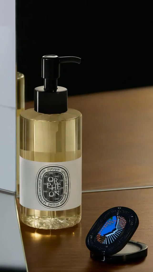 Diptyque's Orphéon Cleansing Hand & Body Gel transforms a simple skincare routine into a refined, sensory experience. The gel foams gently and cleanses the skin while subtly releasing the iconic Orphéon fragrance. Inspired by the legendary Parisian jazz café of the 1960s, the scent evokes a sense of polished wood, powdery elegance, and warm memories of smoky evenings filled with music and creativity.