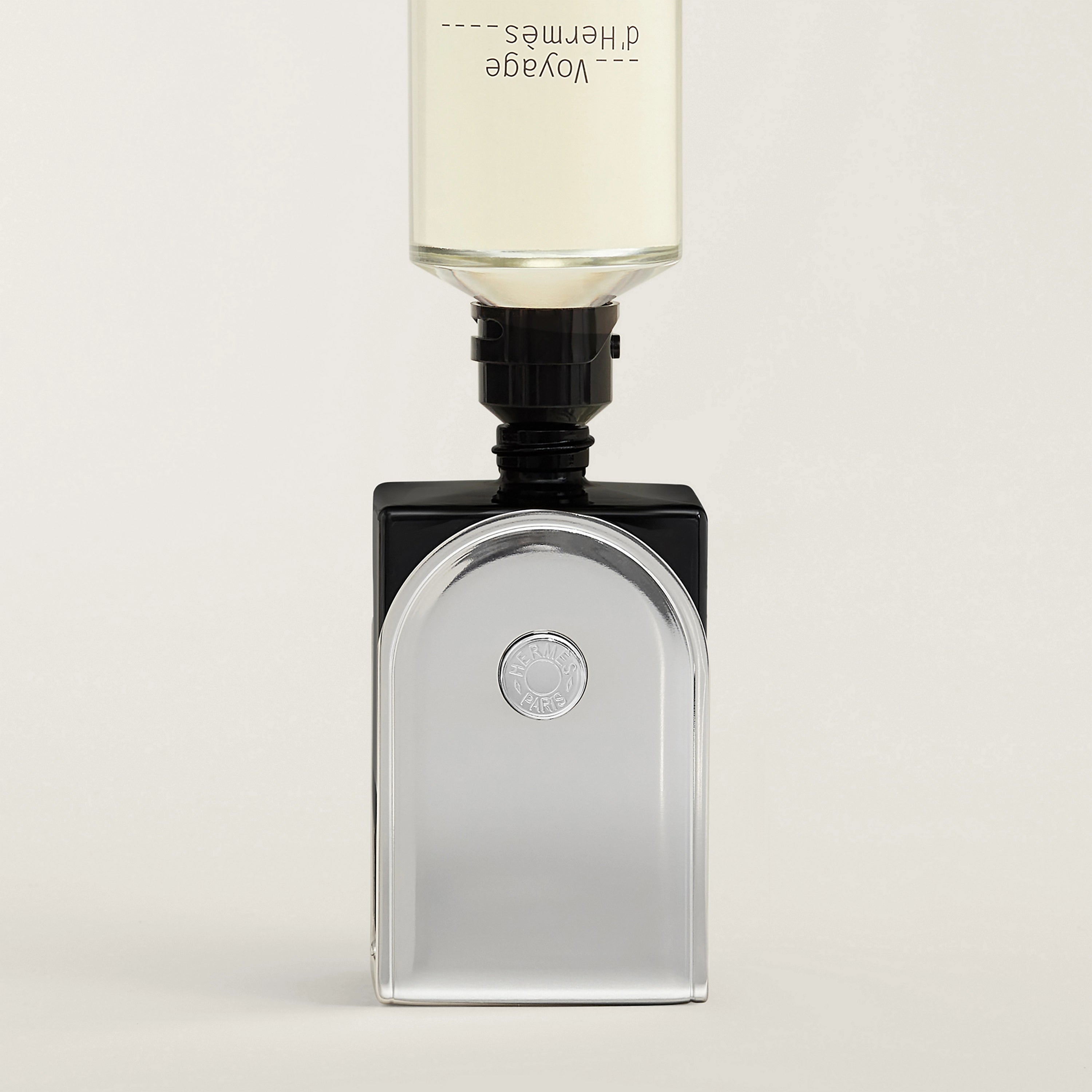 Voyage d'Hermès Parfum Recharge is ideal for those who have made fragrance a ritual. This refill respects Hermès' sustainable design and offers the opportunity to relive the fragrance without extra packaging or waste. A fragrance for travelers at heart. Warm, refined, and imbued with elegance. A perfect addition for those who enjoy refilling their perfume bottles without compromising on style or quality.