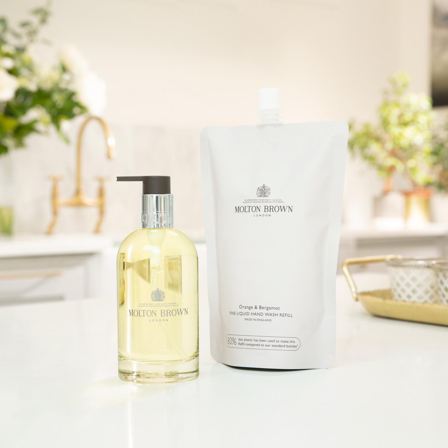 The Fine Liquid Hand Wash Orange & Bergamot in a glass bottle is a refreshing and vibrant hand soap that gently cleanses hands and leaves a sparkling, citrusy scent. Inspired by the sunny orchards of Sicily, this fragrance offers an uplifting and refined fragrance experience with a balance of citrus and floral notes.