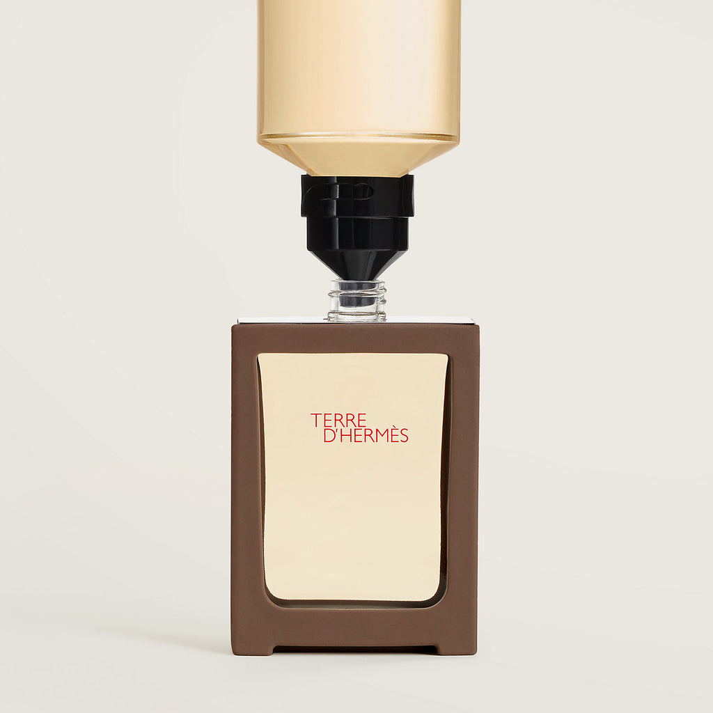 Terre d'Hermès Eau de Toilette Rechargeable offers the iconic Terre experience in a convenient, refillable format. The set includes an elegant 30ml vaporizer, perfect for on-the-go use, along with a 125ml refill bottle. A thoughtful combination of luxury and sustainability. This edition stays true to the characteristic Terre signature: a perfect symbiosis of earth and air, within easy reach and easy to refill.