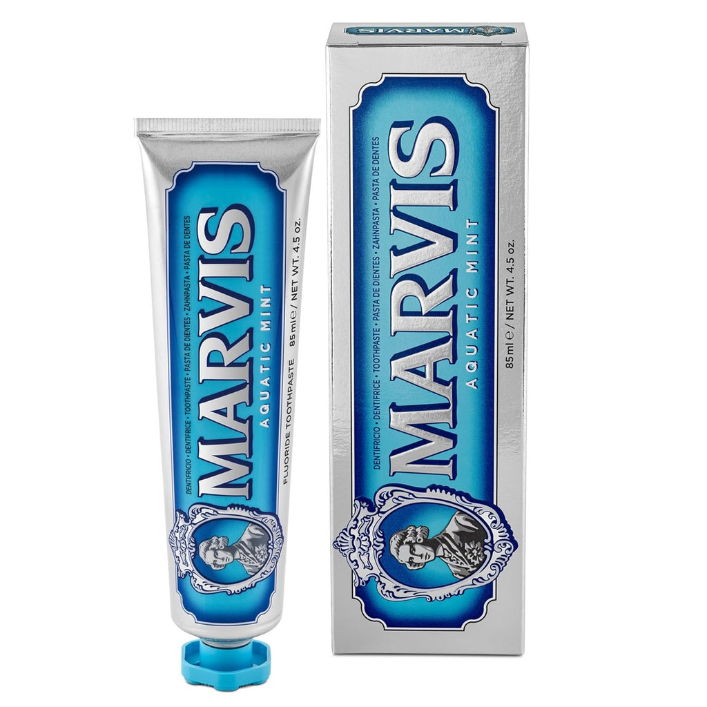 Experience the ultimate freshness with Marvis Aquatic Mint. This refined toothpaste combines a soft, cooling mint with the sparkling freshness of a sea breeze. The result? A subtle, long-lasting freshness that invigorates your mouth without being overpowering.