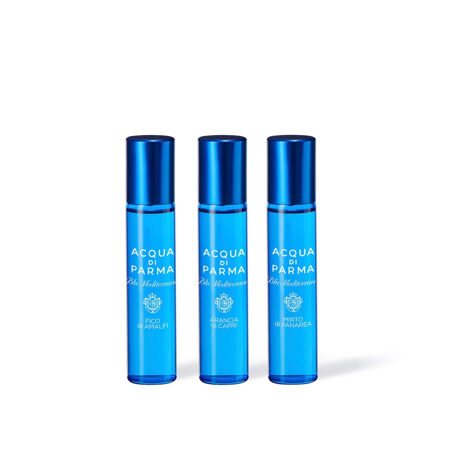 Blu Mediterraneo Discovery Set van Acqua di Parma is een uitnodiging om de zonovergoten kusten en betoverende landschappen van de Middellandse Zee te ontdekken, gevangen in geur. Deze set brengt een selectie van de meest geliefde parfums uit de Blu Mediterraneo-lijn samen, elk een ode aan een andere mediterrane bestemming, en samen een ware reis door helderblauwe zeeën, groene heuvels en zonnige boomgaarden.
