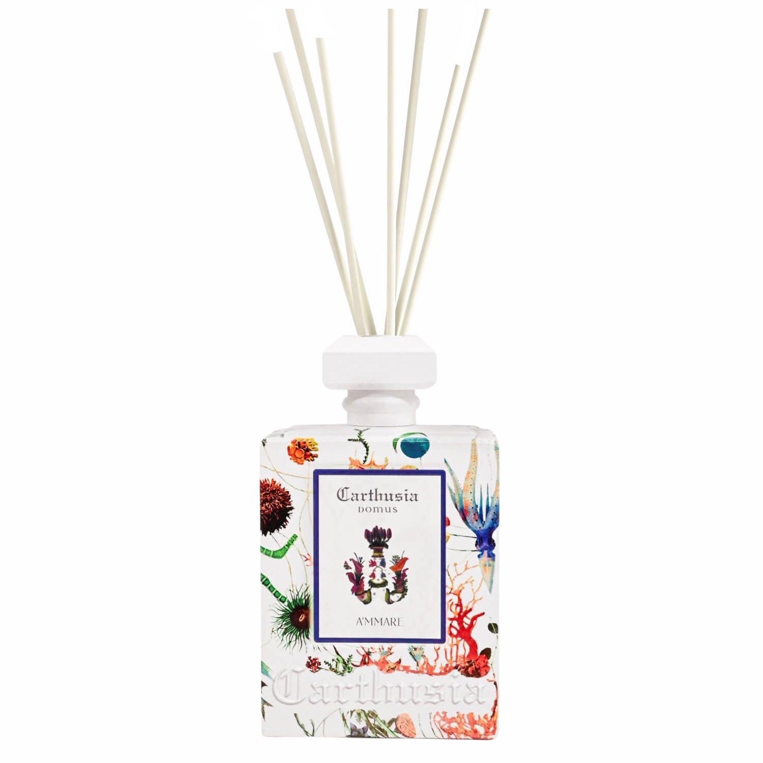 Carthusia A’MMARE Home Diffuser brengt de betoverende frisheid van de zee tot leven in je interieur. Deze luxe diffuser roept de energie op van zonovergoten kusten, helderblauwe golven en de sprankelende lucht van de Middellandse Zee. De geur opent helder en verkwikkend, met een marien akkoord dat direct doet denken aan zoute zeebriesjes en frisse ochtendduiken. Na verloop van tijd ontvouwt zich een kruidige, warme hartnoot die doet denken aan mediterrane kruiden en bloemen onder de zon, terwijl een zachte, houtachtige basis de compositie diepte en elegantie geeft.
