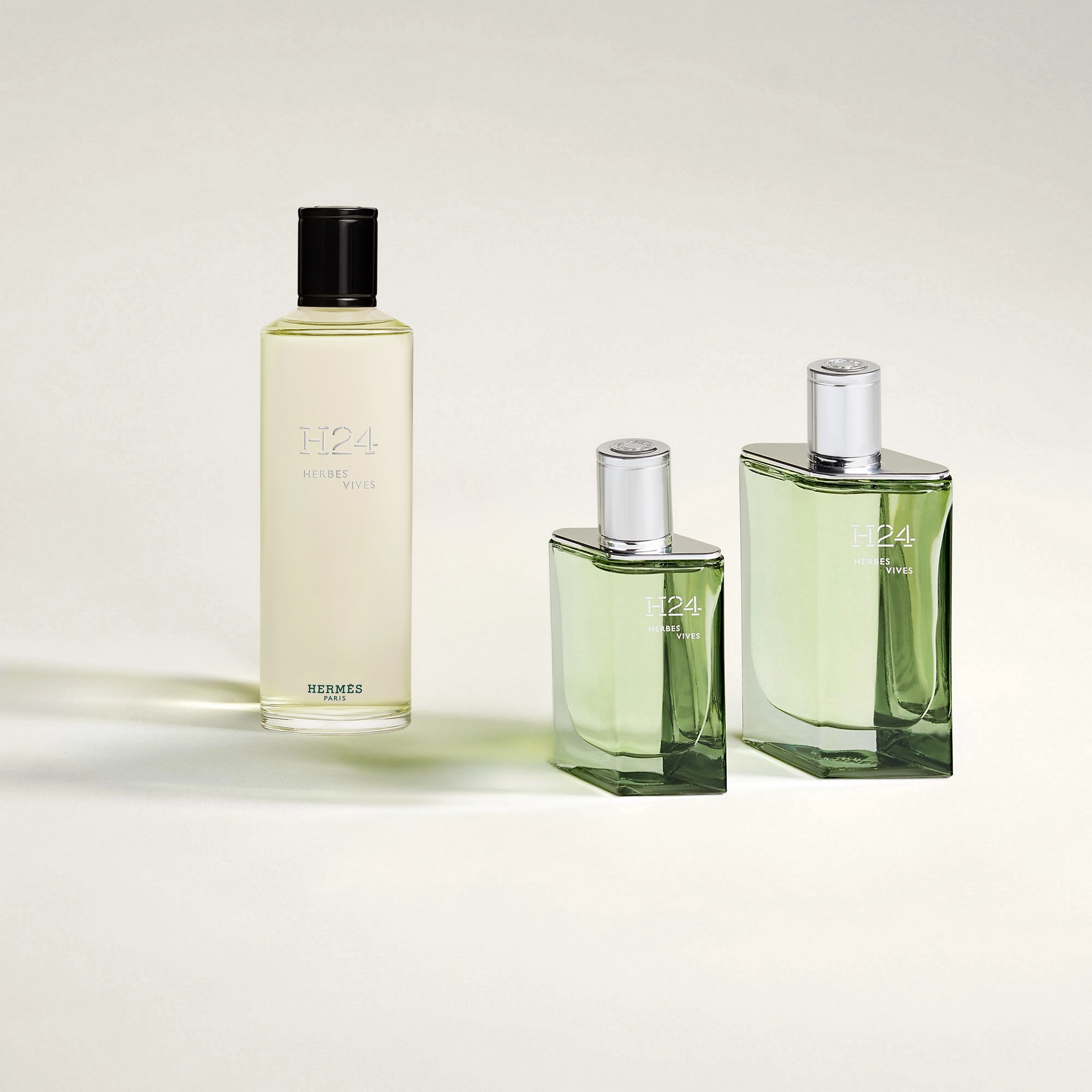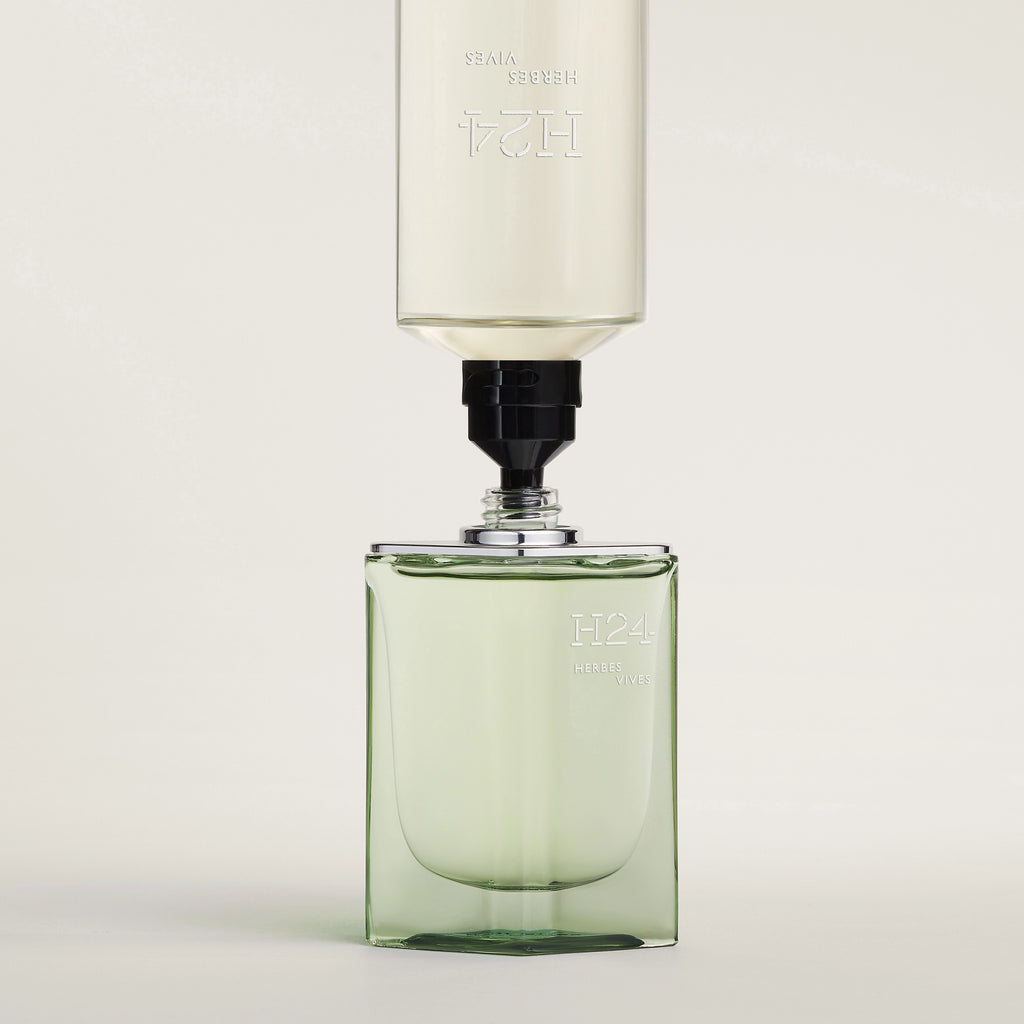 H24 Herbes Vives Eau de Parfum Refill is de duurzame navulling van de geur die frisheid heruitvindt. Deze refill verlengt de levensduur van je flacon op elegante wijze, en behoudt de essentie van de originele creatie: een geur die regen op vers groen oproept, tussen natuur en moderniteit in.