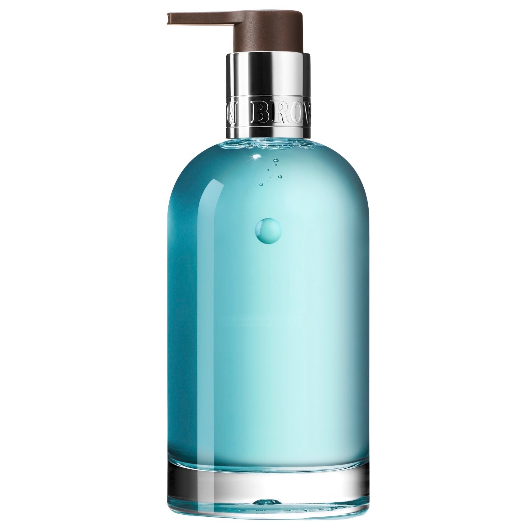 Molton Brown Glass Bottle Fine Liquid Hand Wash Coastal Cypress & Sea Fennel is een verfrissende, maritieme handzeep die de huid zacht reinigt en een energieke, aquatische geur achterlaat. Geïnspireerd door de ruige kustlijnen en de verkwikkende zeelucht, biedt deze geur een perfecte balans tussen frisheid, kruiden en houtachtige warmte.