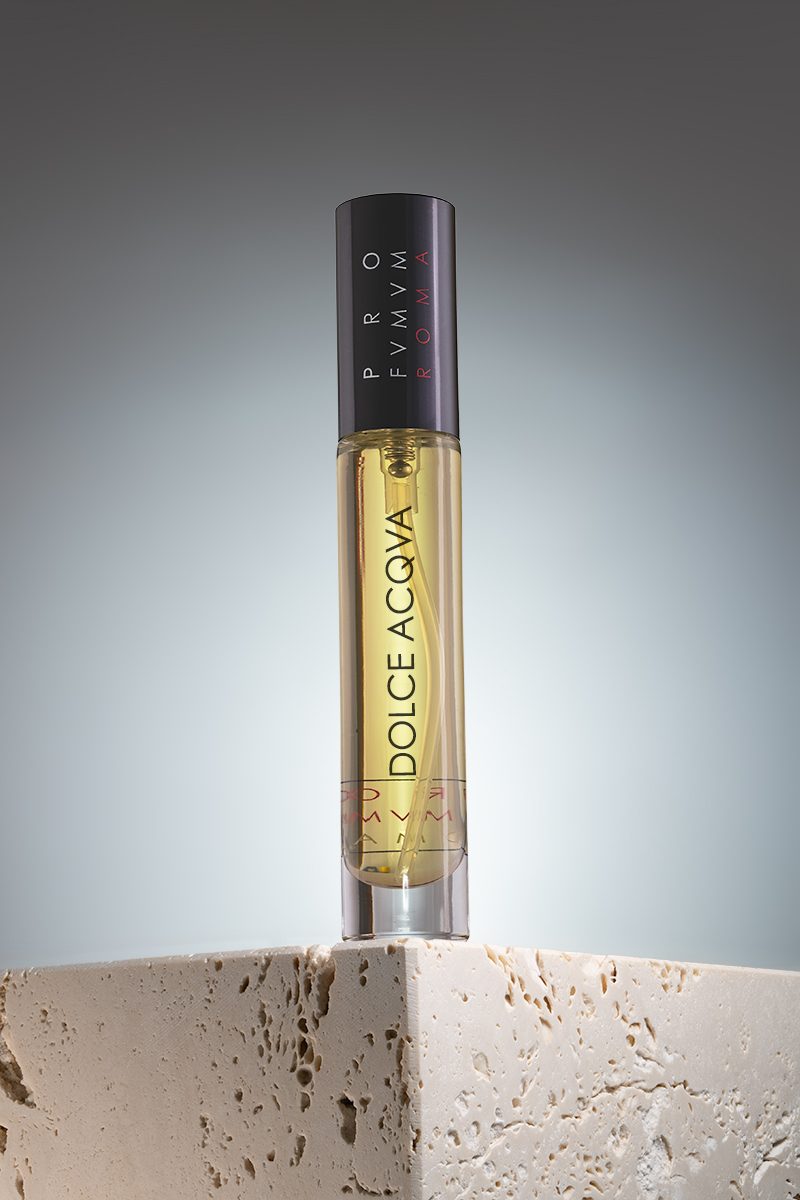 De naam “Dolce Acqua” betekent “zoet water” in het Italiaans, wat de verfrissende en gourmand aard van deze geur benadrukt. Dolce Acqua is ontworpen om je mee te nemen naar een houten promenade die leidt naar een strand dat afloopt naar de zee, gekleurd door een rode zonsondergang. Tussen de duinen waait een lichte bries die ons omhult en ons de geluiden en kleuren van het feest brengt.